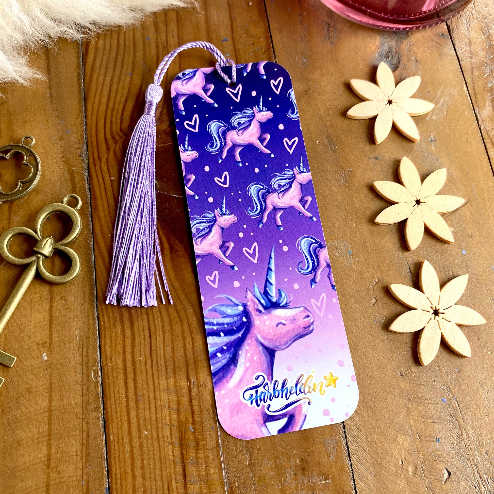 Mit diesem zauberhaften Lesezeichen wird das Lesen noch magischer! Das Buchzeichen zeigt rosa Einhörner vor einem verträumten lilafarbenen Hintergrund mit Farbverlauf. Die süße Lesemarke besitzt zudem eine praktische Tassel samt Kordel als Lesebändchen. So findest Du immer schnell an die letzte Stelle in Deinem Buch zurück.