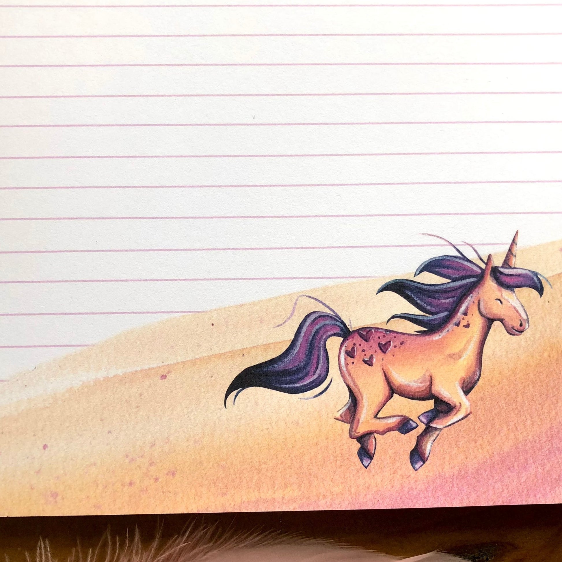 Dieser magische linierte Notizblock im DIN A5-Format zeigt ein fröhliches gelbes Einhorn! So wird Schreiben zum zauberhaften Vergnügen! Der Schreibblock ist ideal für deine Notizen, Gedanken oder Zeichnungen geeignet – ob in der Schule oder zu Hause. Der Block ist zudem ein tolles Geschenk für Schulkinder, Pferdemädchen und alle Einhorn-Fans, die ihren Alltag mit ein bisschen Magie füllen möchten.