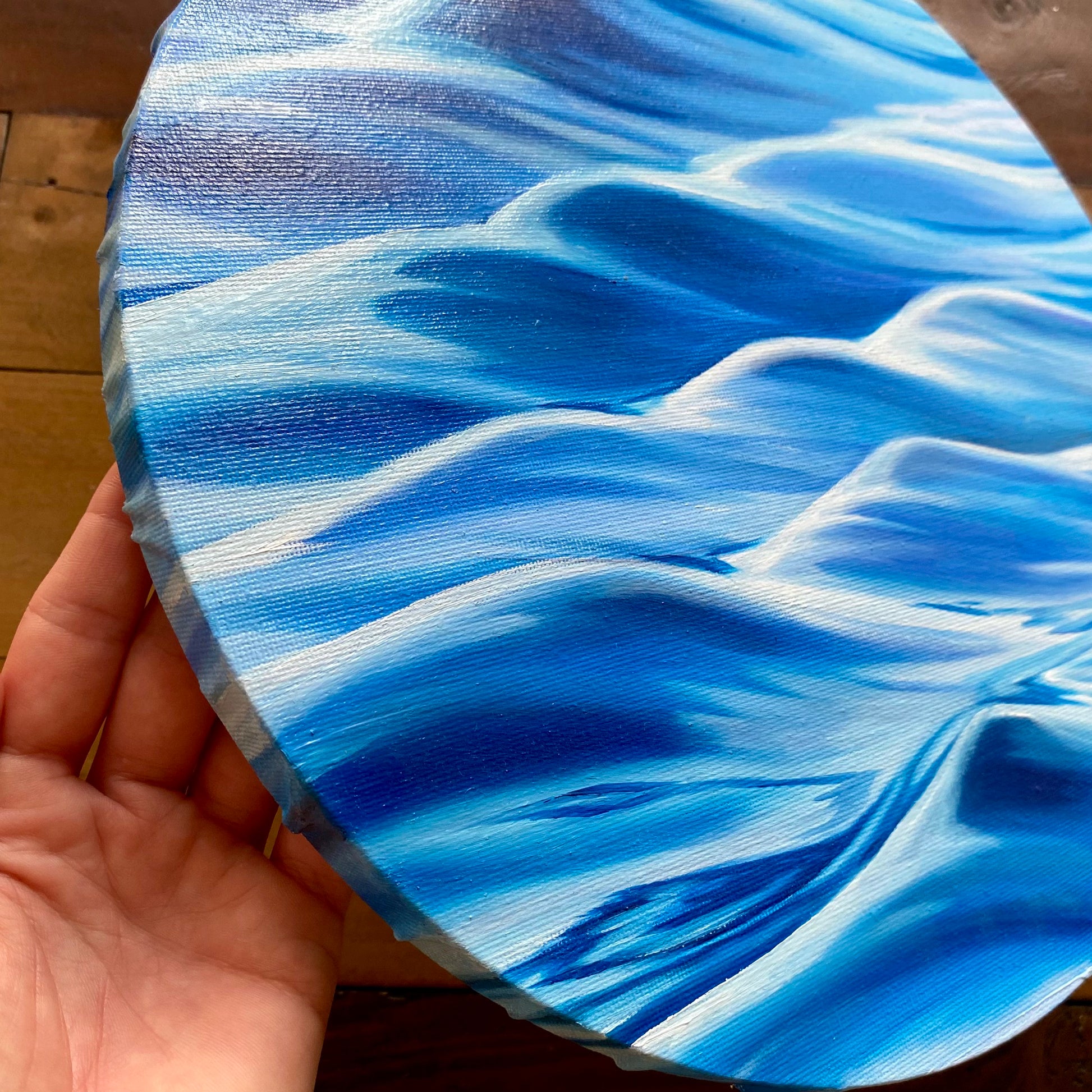 Meereslandschaft "Blaue Wellen" in Öl 30 cm Durchmesser