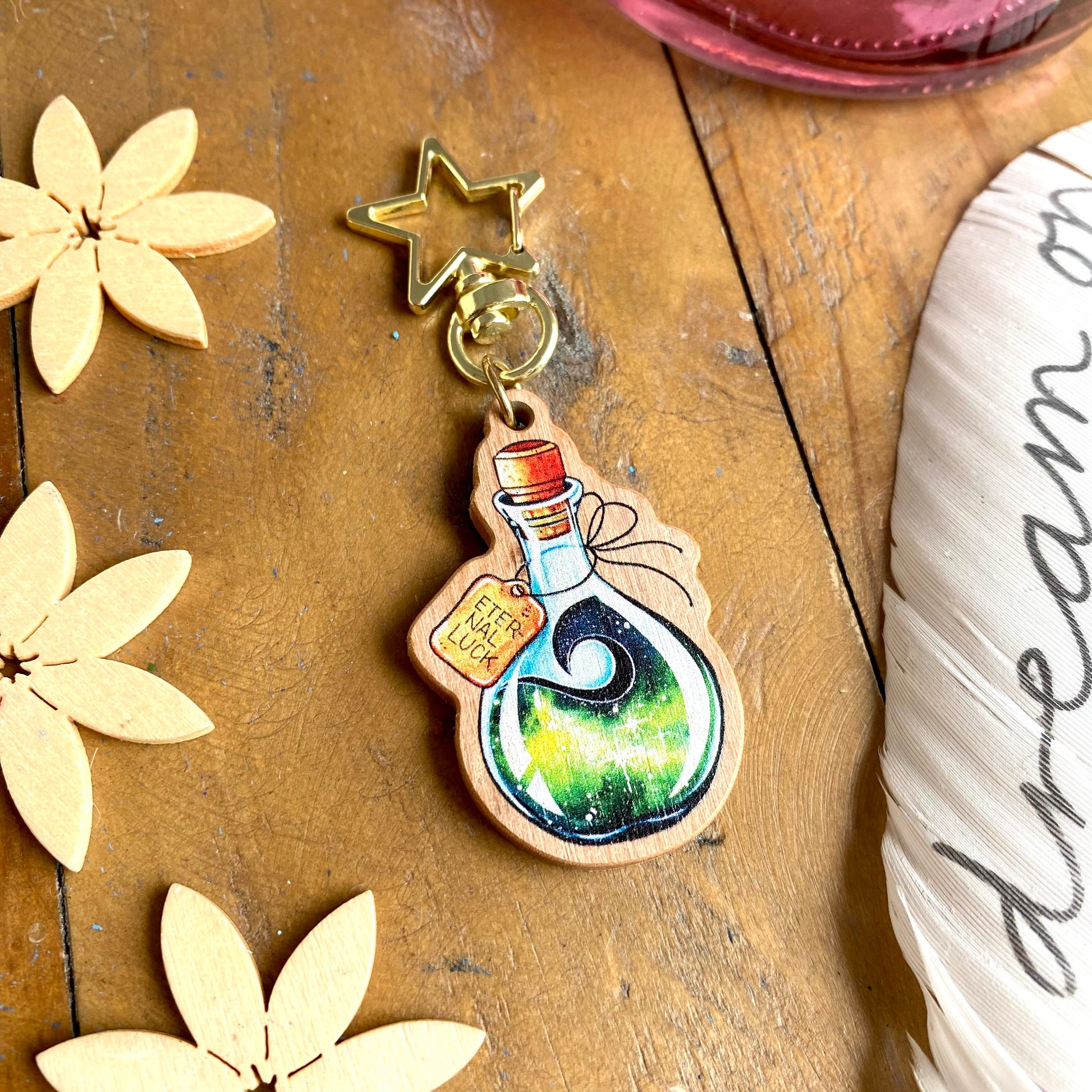 Verleihe deinem Schlüsselbund mit diesem Zaubertrank-Schlüsselanhänger ein magisches Upgrade! Das Eternal Luck-Tränkchen (ewiges Glück) ist Dein Glücksbringer und begleitet Dich als Talisman durch den Tag. Die satten Farben und die niedliche Form des Trankes bringen eine extra Prise Magie in deinen Alltag. So wird der Zaubertrank-Anhänger auch zum perfekten Geschenk für Fantasy-Fans.