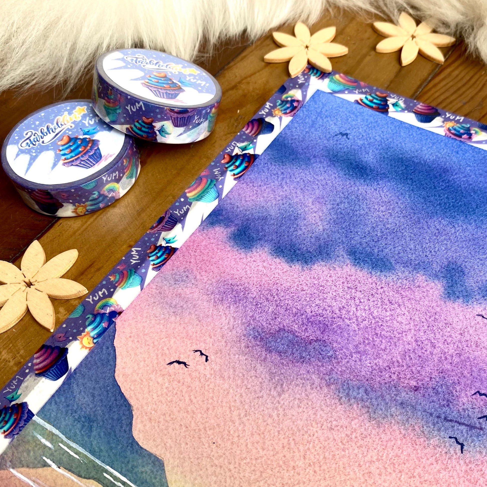 In dieser Variante erhältst Du das süße Cupcake Washi Tape. Die kleinen Kuchen-Illustrationen wurden im Original mit Aquarellfarben gemalt.