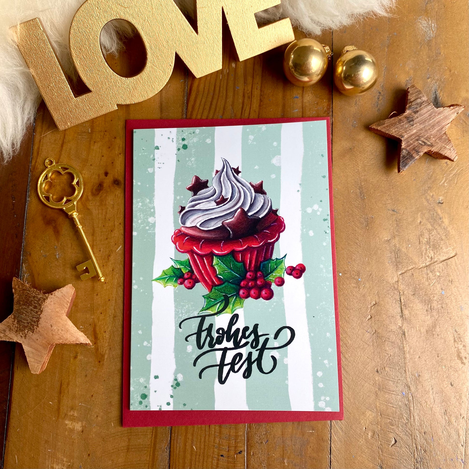 Festliche Grüße mit handgemaltem Charme! Diese süße Weihnachtskarte besticht durch einen liebevoll illustrierten Cupcake im DIN-A6-Format – ein Original aus dem Farbheldin Atelier. Innen erwarten dich eine zierliche weihnachtliche Illustration und jede Menge Platz für deine persönlichen Weihnachtswünsche. Die Karte kommt mit passendem Umschlag zu Dir – so kannst Du sie direkt an deine Liebsten weiterversenden oder verschenken.